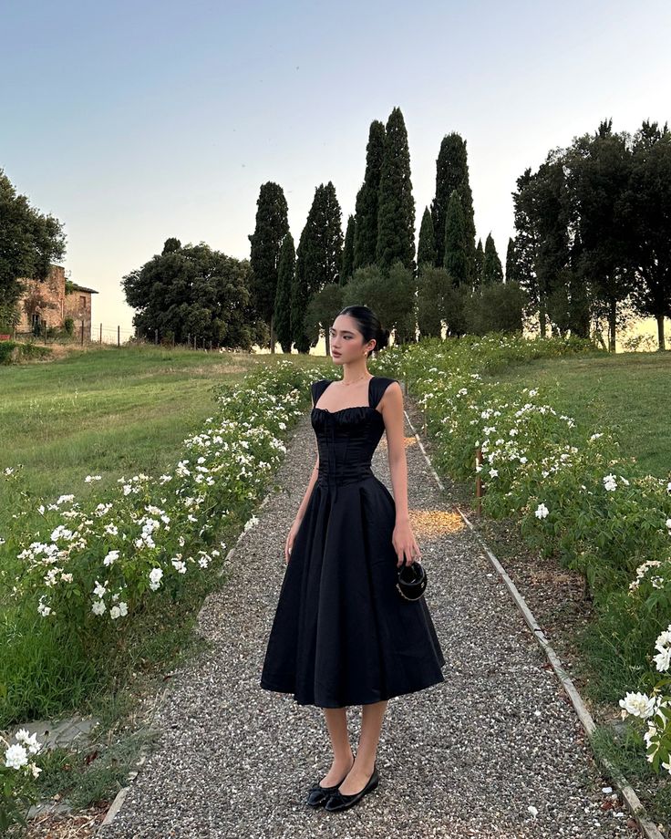 🎀 Cách phối đồ với đầm đen dáng xòe sang trọng